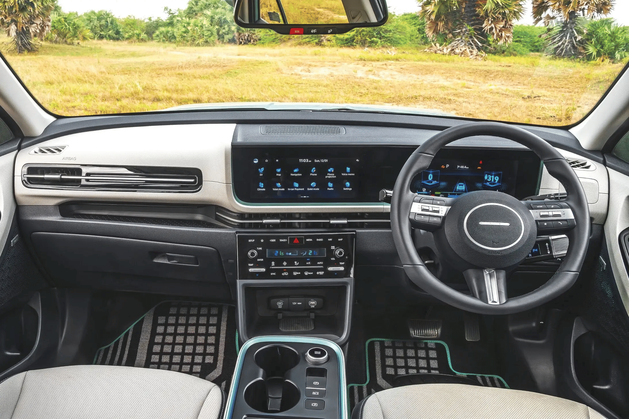 Inside, Kia has exercised phenomenal space engineering in the Syros, extracting headroom and legroom comparable to SUVs from a segment or two above. To enhance the experience at the back, the rear seats slide and recline, seat bases are ventilated, and the windows get sunshades. Up front, the Syros offers dual 12.3-inch screens, ambient lighting, a panoramic sunroof, 360-degree camera, Level 2 ADAS, Harman Kardon sound system, ventilated front seats, and more. The Syros also holds a 5-star Bharat NCAP safety rating.