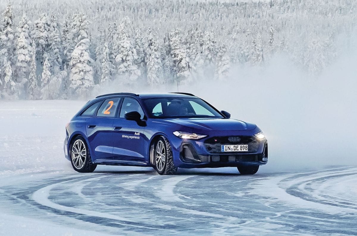 My ice dancing partner for two days is the Audi S5 Avant – the hotted-up estate version of the new A5. The long roof, tight proportions and muscular haunches make it look the business, and it’s got the go to match the show with a 367hp, 550Nm, 3.0-litre turbo-petrol V6. It’s also got a key detail that will make all the difference in this environment – Quattro all-wheel drive. Also essential here are studded tyres. Think of the metal studs as crampons for cars.